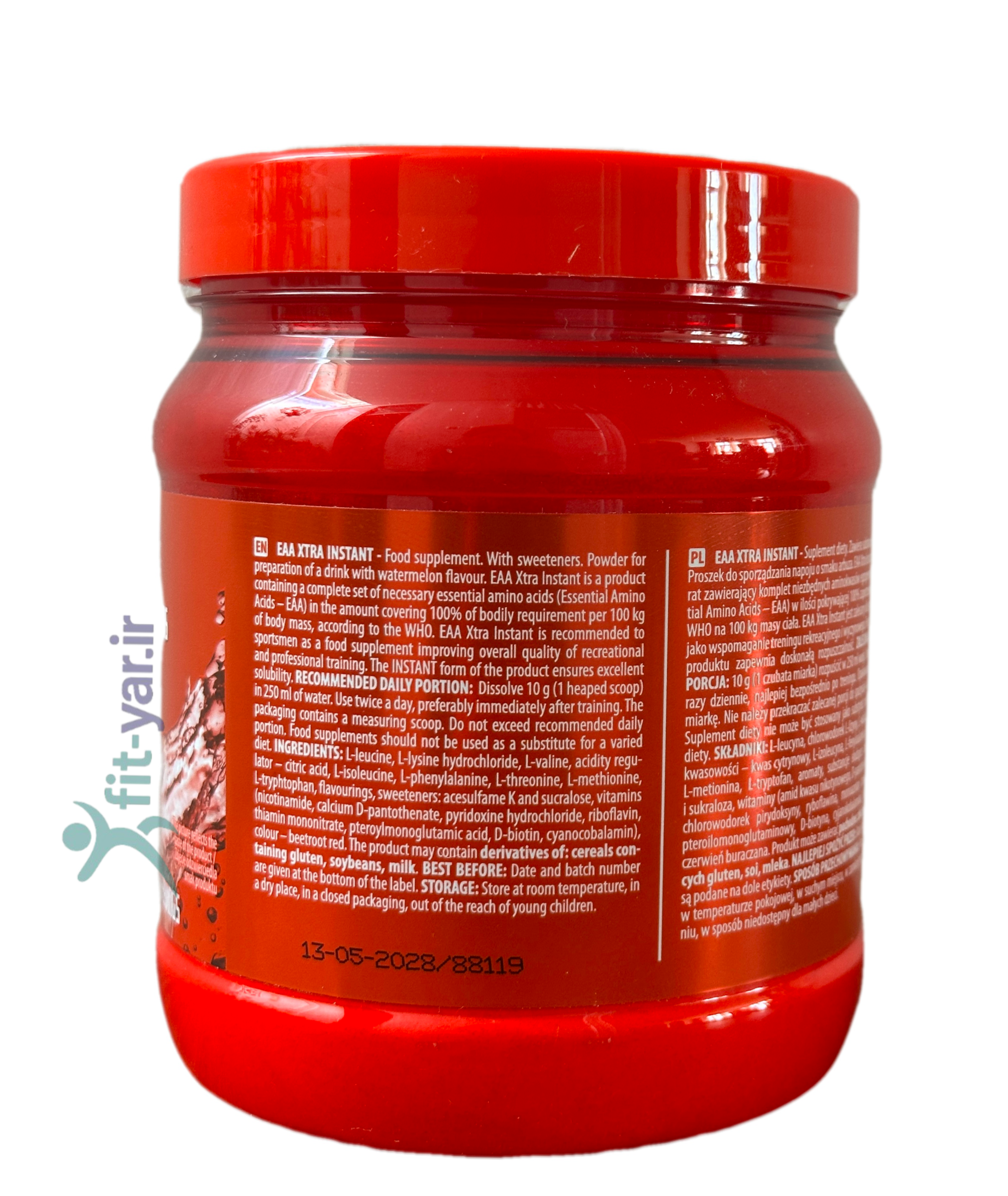 EAA EXTRA با فراهمکردن نسبت بالانس و علمی اسیدهای آمینه ضروری، به شما کمک میکند تا در طول تمرین و پس از آن، روند ریکاوری سریعتر، کاهش خستگی عضلانی و حمایت از سنتز پروتئین را تجربه کنید. این مکمل گزینهای ایدهآل برای ورزشکارانی است که میخواهند کیفیت تمرینات خود را بالا ببرند و حداکثر بهرهوری عضلانی را تجربه کنند—بدون اینکه نیاز به کالری یا افزودنیهای غیرضروری داشته باشند.